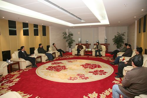 21下午,公司总经理王建国会见了专程来访的南京钢铁集团公司副总经理蒋筱春,工程部部长刘中豪、高线厂厂长朱平等一行。