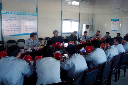 319下午,公司董事长、党委书记康承业,在公司副总经理喻世功、机电公司经理唐克斌的陪同下,来到机电公司中天项目检查指导工作,并与项目部管理人员进行了座谈交流。