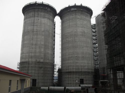 该子项工程包括6座高54米、直径22米的水泥库。此两座水泥库自323开始滑模以来,项目部克服连续阴雨等不利因素,充分发扬高效严谨、精细务实的企业作风,优化滑模施工方案,采用两库连滑的施工工艺,有效节省了施工时间。同时制定了周密的安全、质量保证措施,确保滑模施工顺利。至此,该项目已完成了4座水泥库的施工。