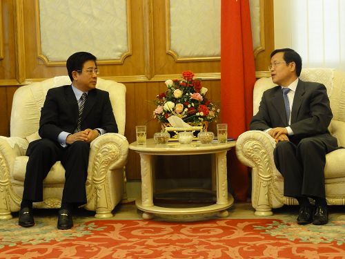 刘登林大使对康董事长的到访表示热情欢迎。刘大使说:“当前,媒体对也门安全形势危险因素增大的报道较多,在这样的形势下康董事长毅然前来也门项目检查工作,体现出康董事长对企业的高度使命感和对十七冶广大员工的高度关怀及高度责任感。”刘大使说:“中国十七冶是为数不多的进入也门的中资企业之一,对于中国十七冶领导来说是需要勇气和魄力,这也为我们大使馆在也门开展工作,做好为中资企业服务增添了信心。”随后,刘登林大使向康承业董事长详细介绍了也门国家的经济形势、资源状况、也门政府接受国外援助的主要项目和领域、社会及政治环境等情况。双方诚挚友好的会见,增进了彼此的了解和友谊。康董事长诚挚邀请刘大使在方便的时候来十七冶访问,刘大使愉快地接受了邀请。