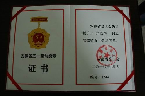 郑治飞获安徽省“十大能工巧匠”称号