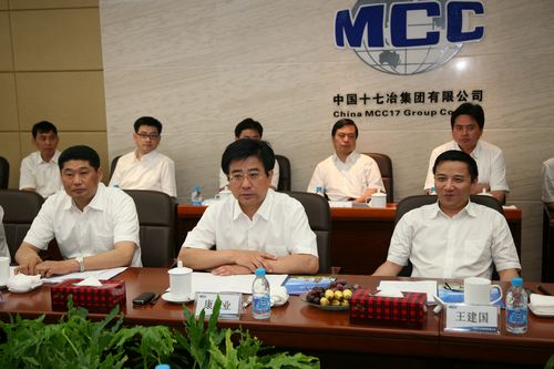 634日,中冶集团董事长经天亮,中冶集团董事、党委常委、中国中冶监事会主席韩长林一行来到中国十七冶集团调研,并与十七冶领导班子成员康承业、王建国、喻世功、彭毅忠、唐灶荣、尹万云、蔡进、董事会秘书汤小建及主要管理部门负责同志举行座谈。中国十七冶集团董事长、党委书记康承业就公司历史沿革、股本和资产、组织机构和员工构成、发展现状等基本情况和始终坚持“五个务必”促进公司可持续健康发展,以及今后的发展方式和方向等进行了汇报。经天亮董事长、韩长林主席与十七冶领导班子进行了沟通和交流,对十七冶两年来所取得的成绩充分肯定,并对今后的工作提出了希望。