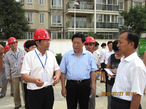 陈启涛书记一行深入现场实地查看土方开挖和深基坑支护,并仔细询问工程进度和防暑降温、安全环保措施。在金融中心工程展板前,市领导们认真听取了开发区投资公司负责人以及十七冶城建公司副经理兼蚌埠金融中心工程项目经理赵俊华的工作汇报。陈书记对目前金融中心工程的总体进度、现场施工环境、安全生产和文明施工表示满意,对工程质量、夏季防暑降温、防洪防涝等提出了具体要求。他指出:蚌埠金融中心工程在保证质量、安全的前提下,要加快施工进度,努力创造“十七冶速度”,展现央企风采,助推蚌埠市大建设、大发展进程。