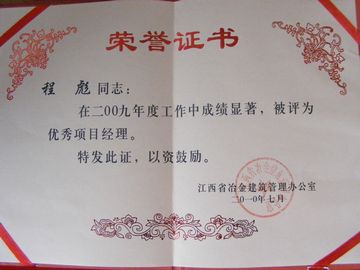 日前,在江西省冶金建筑工作会议上,十七冶集团江西分公司获江西省冶金建筑系统2009年度“先进施工企业”称号;分公司经理程彪被评为2009年度“优秀项目经理”。