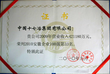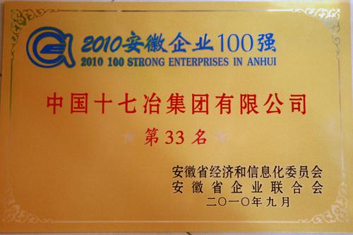 公司获“安徽省2010年百强企业”称号