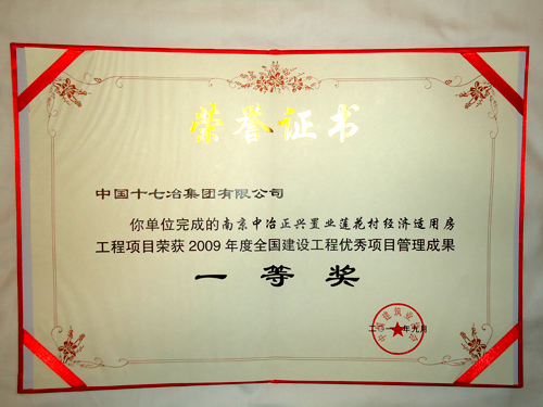 927,从中国建筑协会获悉,在京举办的第五届全国建设工程优秀项目管理成果发布会结果揭晓:中国十七冶集团南京中冶正兴置业莲花村经济适用房工程项目管理成果——《努力做好民生工程》荣获一等奖。唐传平、朱广剑、邵传林、曹振、单冬等五人获项目管理成果个人一等奖。