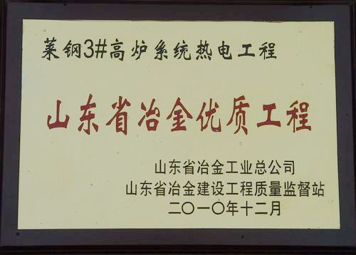 莱钢3#高炉系统热电工程获“山东省冶金优质工程”奖