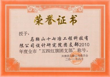 受到共青团马鞍山市委表彰的有:冶金工程技术公司荣获全市“五四红旗团委”称号;常州中天项目经理部、酒钢工程项目经理部荣获市“青年文明号”称号;设计研究院、阿尔及利亚项目经理部荣获市“五四红旗团支部(总支)”称号;风力与太阳能发电工程技术公司刘斌同志荣获市“十大青年岗位能手标兵”称号;赵佳佳、王晋东、刘成波、刘波四人荣获市“优秀共青团员”。