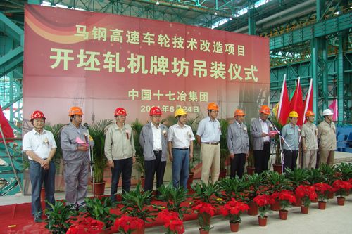 624下午1:28分,马钢高速车轮技改工程轧机牌坊吊装仪式隆重举行。