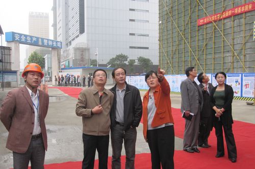 秦武副市长一行在施工现场看了金融中心已建到18层的A楼工程实体形象,认真听取了工程概况及施工进展情况。他对施工的进展、质量、安全、文明施工情况表示非常满意,并特别赞许了现场有序、整洁的施工环境,充分体现了国有企业良好作风,并勉励项目部再接再厉,安全、优质的完成工程主体结构施工。