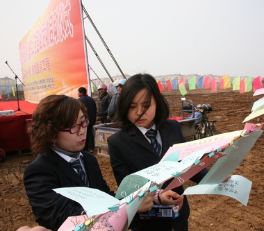 金福置业有限公司青年技术员张淮发作为全市青年突击队代表在仪式上发言。