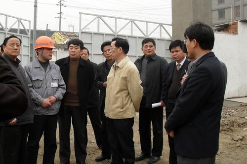 39上午,马鞍山市委常委、纪委书记、市征迁拆迁推进工作领导小组组长张正耀带领市政府有关部门负责人在公司副总经理方荣华、发展改革部副部长羊发根及十七冶拆迁安置房项目经理陈和平的陪同下,亲临施工现场,指导拆迁、拆违工作。