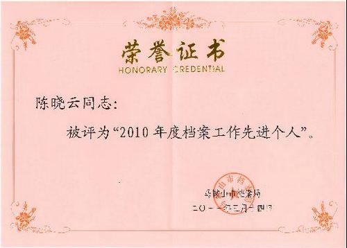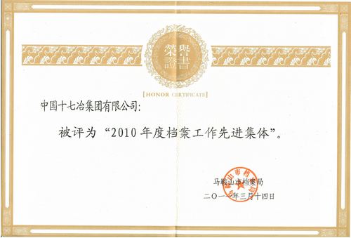 331,在马鞍山市档案工作会议上,公司荣获“2010年度档案工作先进集体”称号,陈晓云同志荣获“2010年度档案工作先进个人”称号。