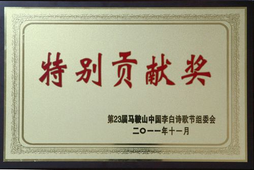公司获23届马鞍山中国李白诗歌节“特别贡献奖”
