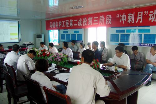 82上午,马钢工程项目经理部召开马钢高速车轮用钢生产线技改工程第二战役第三阶段动员会,吹响了电炉、连铸、轧机三条主线8月“冲刺月”的进军号角。公司总经理喻世功,总经理助理王青山,总经理助理、冶金工程技术公司经理唐克斌,冶金工程技术公司党委书记周美初,马钢股份公司电炉副厂长曹天明,以及公司驻马钢项目督导组、项目部部长以上管理人员和参建单位负责人参加了会议。