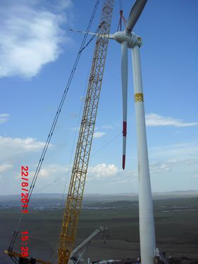 华润满洲里风电场位于内蒙古自治区呼伦贝尔草原西部。我公司负责该风场一期、二期99MW风力发电场的道路施工、风机基础以及风机的安装工程。一期工程于