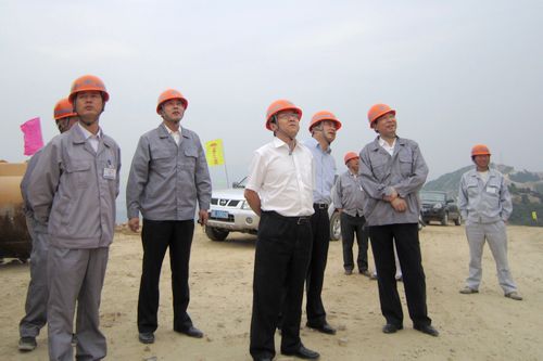 王建国董事长一行首先驱车经过崎岖陡峭山路来到了河南泌阳风电项目3号线13#风机位,仔细地观看了风机机舱吊装过程,并向辛勤奋战的施工人员表示了慰问。在视察过13#风机位、15#16#风机基础和110KV升压站施工情况,听取了项目部工作情况汇报后,王董事长对泌阳风电工程的安全质量工作和施工人员精神面貌给予了充分肯定,要求项目部管理人员在野外施工作业的艰苦环境下要认真抓好安全和质量工作,并强调,安全工作决不是口号,绝不能掉以轻心,一定要把关系到员工生命健康安全的工作放在首位;项目部管理工作一定要上层次,在日常管理中认真做好风险管控和ERP建设工作;项目部领导要搞好团结,加强学习,把员工的生活安排好。
