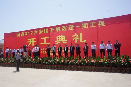 427,阳光灿烂,风和日丽,十七冶路桥工程技术公司参与承建的国道312六安段升级改造一期工程开工典礼隆重举行,安徽省副省长黄海嵩、省政府副秘书长黄晓武、省交通厅厅长梅劲以及六安市等主要领导出席了开工典礼。仪式由六安市委书记孙云飞主持;省交通运输厅厅长梅劲和市委副书记、代市长毕小彬分别在开工仪式上讲话;副省长黄海嵩宣布312国道六安段升级改造工程正式开工。