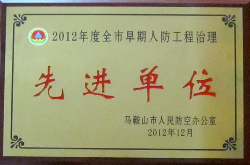 公司获“2012年度全市早期人防工程治理先进单位”称号