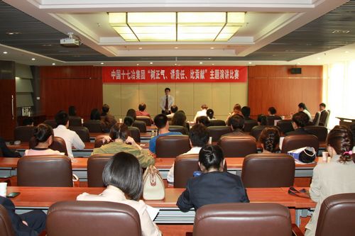 428下午,中国十七冶集团在公司总部举办了“树正气、讲责任、比贡献”主题演讲比赛。由各二级公司精心挑选的18名选手参加了演讲。