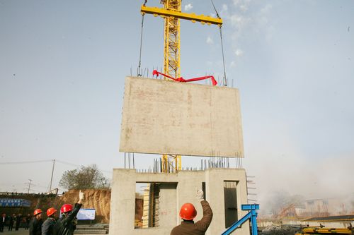 此次施工的楼栋为带地下车库的11层三单元建筑,建筑高31.9m,长为69.84m,宽11.8m。该示范楼构件的成功吊装,标志着公司住宅产业化由前期的预制构件生产阶段正式转为装配施工阶段。