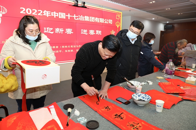 “奋笔迎虎年 送福送春联”,1月21日,中国十七冶集团工会在总部举办迎新春、送春联活动,邀请马鞍山市书法家协会的书法名家为企业职工书写春联,为即将到来的虎年春节增添喜庆氛围。公司工会主席、副总经济师魏致家,工会副主席、党群工作部副部长李静出席活动。