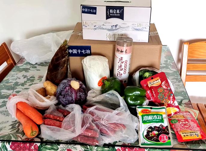 在十七冶派送的“暖心物资大礼包”里,蔬菜种类多样,既有青椒,胡萝卜,竹笋,土豆,白菜,榨菜,甘蓝菜,西兰花等蔬菜,也有肉类紧缺物资,“荤素搭配”、一应俱全,满满一大包,承载着沉甸甸的“十七冶关怀”,切实缓解了在沪退休生活压力,更让大家感受到了“娘家人”的暖意,携手共度艰难的疫情时刻。