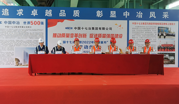 9月1日,中国十七冶集团在马钢新特钢项目举办主题为“推动质量变革创新、促进质量强国建设”的“质量月”活动启动仪式。