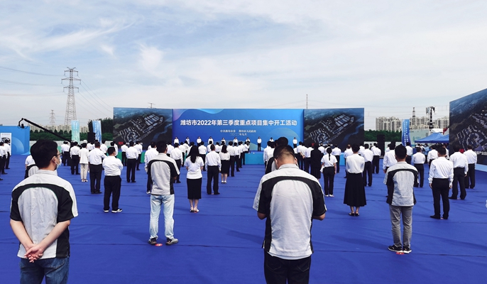 9月3日上午,由潍坊市委、市政府举行的全市2022年第三季度重点项目集中开工仪式在中国十七冶集团山东分公司承建的保税虚拟现实产业园项目现场顺利举办,各分会场通过视频连线进行互动。潍坊市级相关领导,市直有关部门单位负责人;中国十七冶集团副总经理周金龙,副总工程师、山东分公司经理吕正东,山东分公司常务副经理胡德帅等参加了开工仪式。