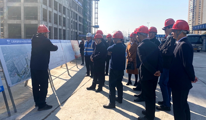 谭永香董事长一行实地查看项目建设情况,了解施工进度,听取项目负责人关于项目概况、质量安全及复工复产等情况的介绍,对项目前期建设取得成果及工程质量、安全文明施工等管理举措表示充分肯定与赞扬,并对项目2月18日完成所有主体封顶这一重要节点表示祝贺。同时,谭永香董事长表示,项目团队要积极发挥十七冶央企管理优势,继续保持良好的工作劲头,全力以赴完成项目建设任务。