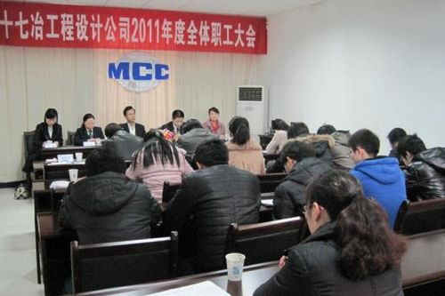 元月13日上午,十七冶工程设计公司隆重召开2011年度全体员工大会,集团公司总工程师尹万云、工程设计公司领导班子及全体员工参加了会议。