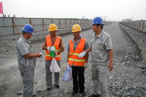 路桥工程技术公司承建的沈阳浑南新区现代有轨电车项目是第十二届全运会综合交通体系的重要组成部分,以“绿色、节能、高效、景观”为特色,将成为我国城市现代交通体系的标志性工程和示范工程。时近七月的沈阳骄阳似火,持续高温,恰逢该工程“大干100天”,项目全体参战人员冒着炎炎酷暑,默默奋斗在施工生产第一线。为保障职工的身体健康,沈阳有轨电车项目送清凉活动开始启动,项目部为一线员工购买了清凉油、风油精、花露水、绿豆、冰糖等消暑物品,在炎炎夏日给坚守在岗位的员工送上丝丝清凉。