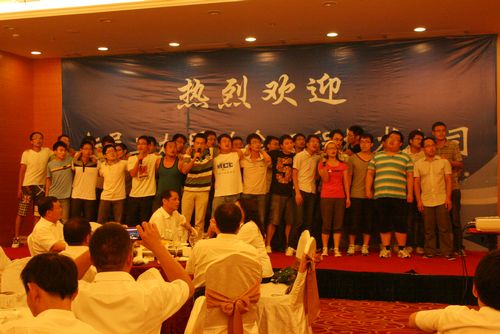 在随后的联欢活动中,新老员工其乐融融,歌声笑声不绝于耳,小合唱、独唱、武术、互动魔术、游戏等精彩节目将现场的气氛一次次推向高潮,全体新员工们合唱的《真心英雄》真切的表达了青年人誓做企业英雄的决心。