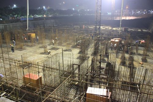 716晚,中国十七冶集团城建工程技术公司承建的芜湖鼎邦•家和园项目2#地库超大型基坑底板开始第一区域砼浇筑。