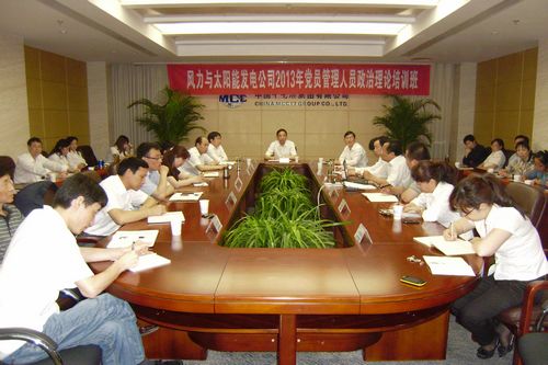 520下午,风力与太阳能发电工程技术公司举办了2013年党员、管理人员政治理论培训班。公司领导班子、机关各部门、工程处全体管理人员、在马项目经理等30余人参加了学习。