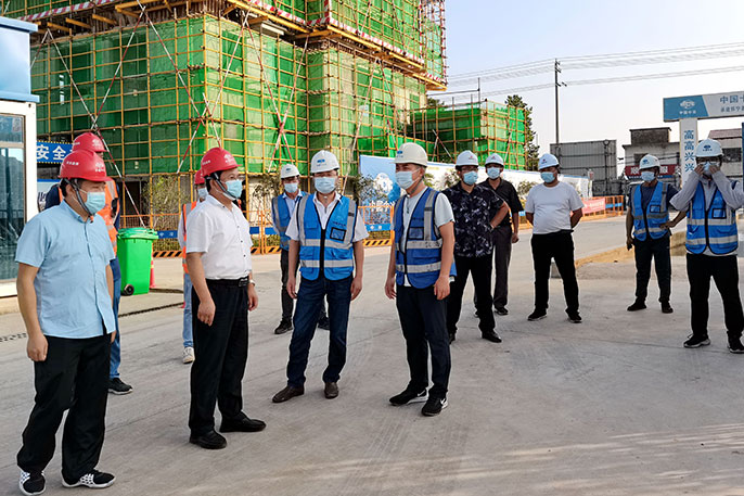 8月17日下午,安徽省怀宁县副县长何刘圣,县重点工程建设中心主任黎昕初到中国十七冶集团房屋分公司承建的怀宁县高河镇骑龙社区棚户区改造项目检查指导疫情防控工作。房屋分公司副经理汪永生等参加检查。
