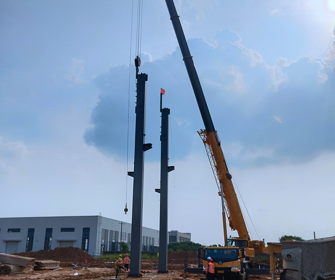 为保证此次吊装顺利进行,项目部努力克服工期紧、任务重、质量要求严、安全风险大等诸多不利因素影响,科学编排施工方案和应急预案,合理配置人、材、机资源,不断提高施工效率;认真梳理施工节点要素、目标,细化分解施工目标,抓住关键线路,紧盯施工现场,全面推进施工进度;严格按照施工设计组织施工,加强对重大节点工序的监督,确保质量符合标准;狠抓安全管理,对施工作业人员进行详细的安全技术交底,安排专人值守全程监督,坚决守住安全生产红线。项目部大干快上,顺利完成钢结构首次吊装,为后期全面施工奠定了坚实基础。