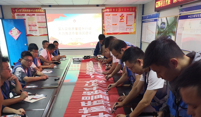 9月1日,在全国“质量月”活动到来之际,中国十七冶集团路桥工程技术分公司紧紧围绕“深入实施质量提升行动,大力推进质量强国建设”主题,组织各在建项目开展“质量月”活动启动仪式。
