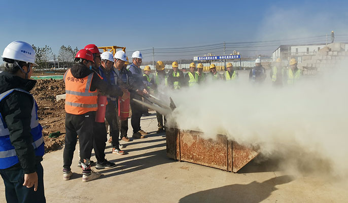 在消防安全应急演练前项目负责人对此次消防演练的目的及消防演练的重要性进行了传达贯彻详细说明了灭火器的使用方法、灭火注意事项,并就如何使用消防栓、灭火器等消防器材进行了现场示范。现场演练正式开始后全员迅速进入安全演练状态,“眼见”施工现场发生火灾”,应急救援各组迅速抵达现场投入抢险,在火灾面前临危不乱,有序开展安全疏散、快速灭火,转移物资,整个过程紧张有序、实用性强。