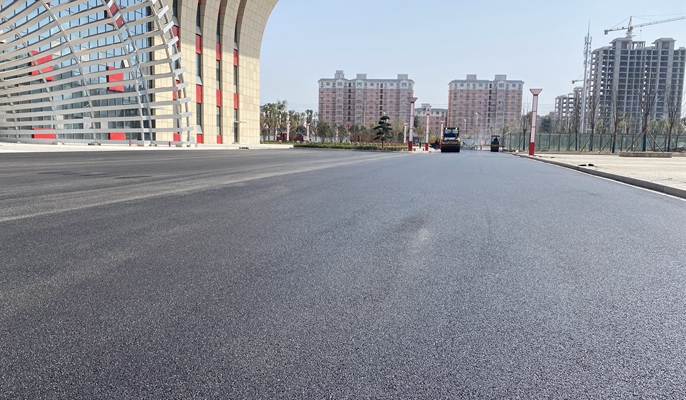 项目室外环形沥青道路结构总厚度为45厘米,长度约为2000米,宽度为9米。沥青面层施工时段正值天气温度上升阶段,项目部科学部署,设置凉棚用于工人休息,实行工人轮班休息,把防暑降温工作落实到位。施工人员顶着沥青路面蒸腾滚烫的热气,密切协调配合,严格把控摊铺温度、厚度、遍数、横坡等参数指标,科学有效地确保施工质量的同时,全力保障安全生产,严格按规范要求顺利完成了面层沥青摊铺工作。
