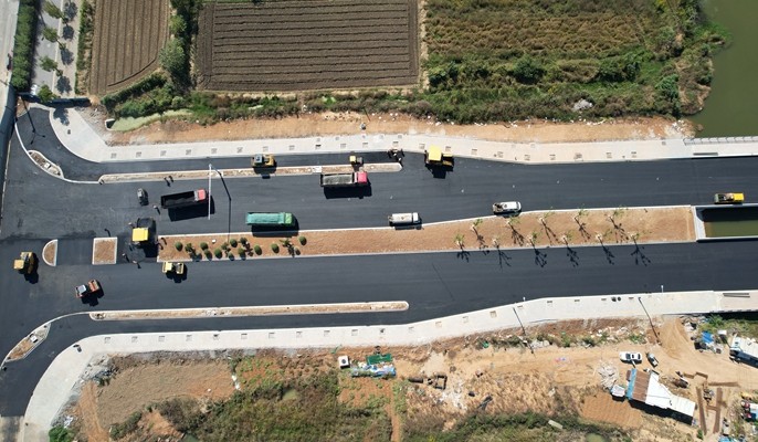 马鞍山经开区小山路沥青摊铺完成