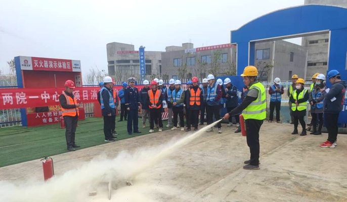 15日上午,汉中市“两院一中心”项目特别邀请汉中市南郑区消防支队政委亢佳,在项目建设现场开展了一场“消防月”主题宣教活动。亢佳政委首先为全体管理人员讲解了基本消防安全制度,结合消防事故案例与项目现场实际,介绍了相关法律法规、建筑施工特点、易导致火灾的隐患,并传授消防预防与救援知识、火灾应急逃生技巧。在项目安全体验区,他为大家详细介绍了消防灭火器的种类、使用场景与使用方法,并进行了现场演示,让大家对消防知识有了更直观的了解。
