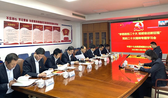 11月19日上午,中国十七冶集团城建工程技术分公司召开党的二十大精神专题学习会,公司领导班子参会。中国十七冶集团党群工作部副部长李静列席会议。