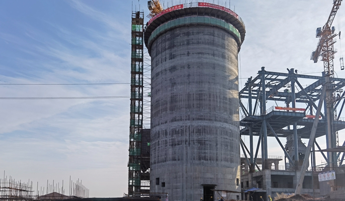 11月18日,中国十七冶集团房屋分公司承建的乌兹别克斯坦塔什干海螺水泥厂项目生料库主体结构筒仓部分滑模到顶,项目施工取得重大阶段性进展。
