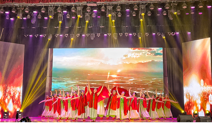 为了做好参加此次系列活动,十七冶老年大学精心组织,周密部署,从诗歌舞蹈主题确定、音乐选择、队员选拔、组织排练到后勤保障、安全服务,都做到步步落实。经过学校师生几个月的努力和辛苦排练,确保了演出成功。在当天的演出中,四名学员以充满激情的诗歌讴歌了党的丰功伟绩,抒发了对党的热爱之情;由20名学员组成的舞蹈队,以《万疆》音乐为背景,以优美的舞姿表达了对伟大祖国的祝福,洋溢着在党的领导下人民幸福安康。