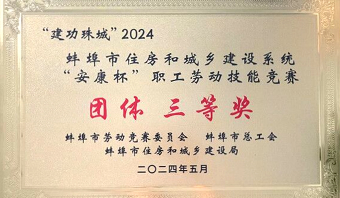 5月20日,蚌埠市住房和城乡建设系统“安康杯”职工劳动竞赛颁奖典礼落幕,中国十七冶工业建筑分公司固镇县人民医院中医院幼儿园项目部从蚌埠市25支队伍中以第四名的优异成绩进入决赛,斩获团体三等奖,项目部王琨同志获评个人三等奖。