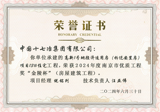 “金陵杯”奖是南京市建设工程领域的最高质量荣誉奖江苏分公司将以此次荣誉为契机,坚定“一创两最五强”奋斗目标,树立品牌意识,强化质量创优,为十七冶在南京市场的开拓进一步贡献力量。(江苏分公司 方天棋)