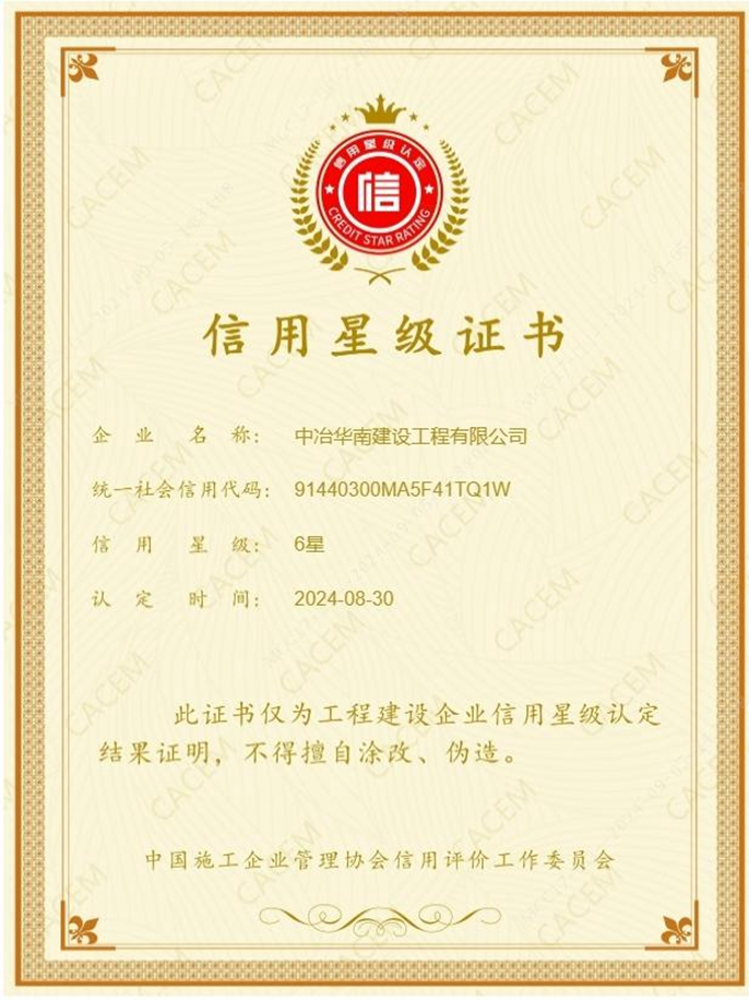 中冶华南获中施企协6星信用星级认定