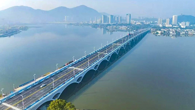 作为黄石重点民生工程,磁湖绿色廊道西起桂林南路苏州路交叉口东侧,东至沿湖路磁湖通道交叉口西侧,线路总长约1.5千米,主要建设长约0.85千米的明月桥,集生态步道、景观桥梁等功能于一体对满足城市交通出行需求、带动环磁湖文旅发展、提升城市价值品质等方面具有重要作用。