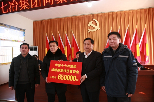 127日上午,中国十七冶集团董事长、党委书记喻世功,纪委书记、副总经理蔡进到公司定点扶贫村滁州市定远县蒋集镇秦集村参加秦集村党员群众大会暨扶贫款捐赠活动,并走访慰问贫困户。公司党委工作部部长杨绍凤代表十七冶向秦集村送去了65万元扶贫款,支持该村扶贫产业发展。